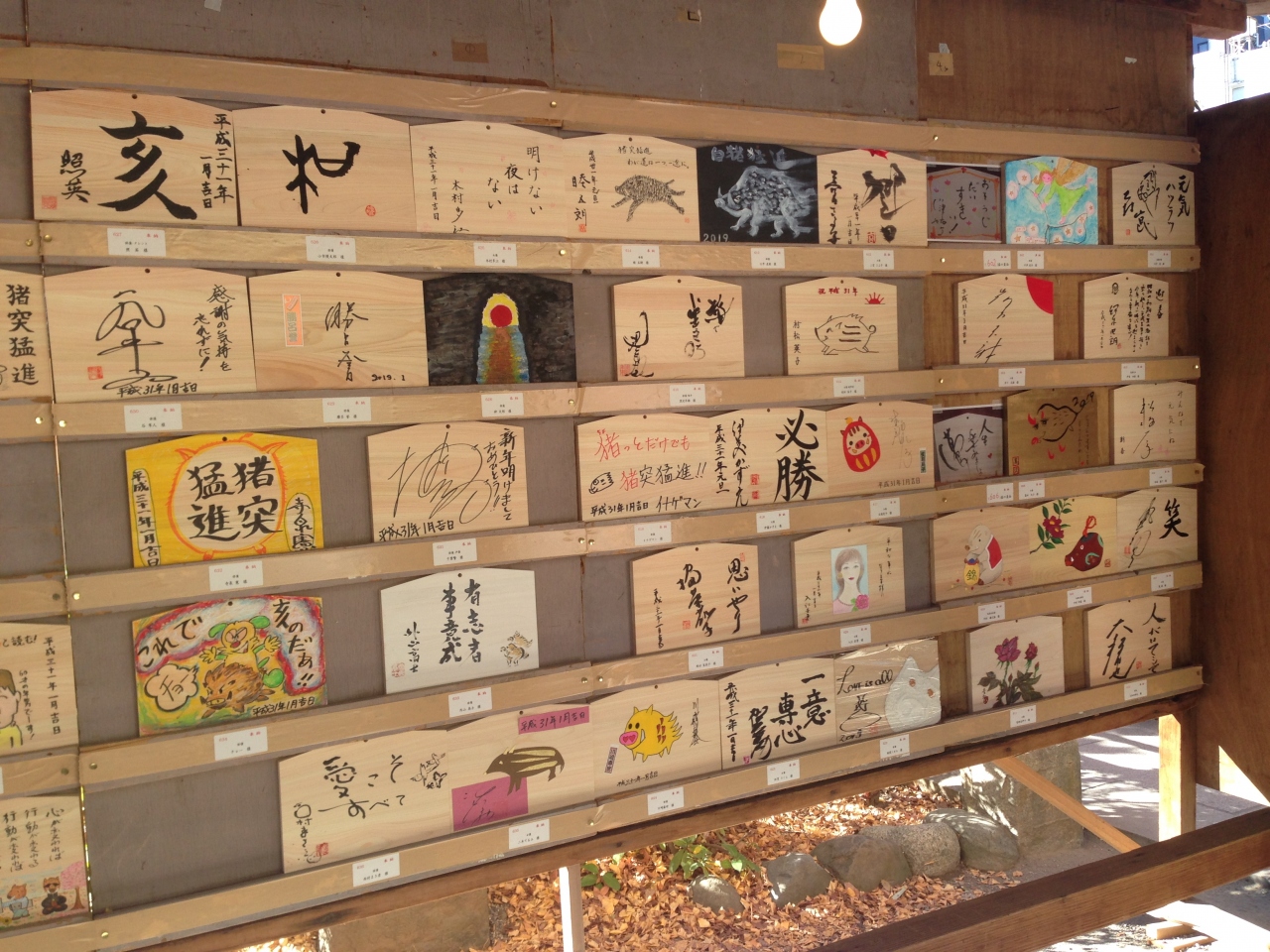 正月3日だったので、人も少な目、すぐ沿道では、大学駅伝が行われ、賑わっていました。神社内では、甘酒コーナーなどもありました。境内内には、有名人が書いたという絵馬がたくさん展示されていました。似ているものもあり、似てないものもたくさんあり。