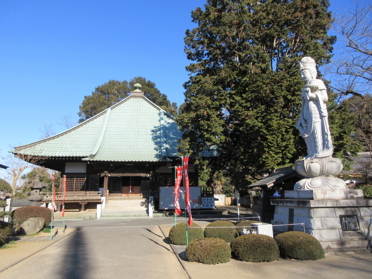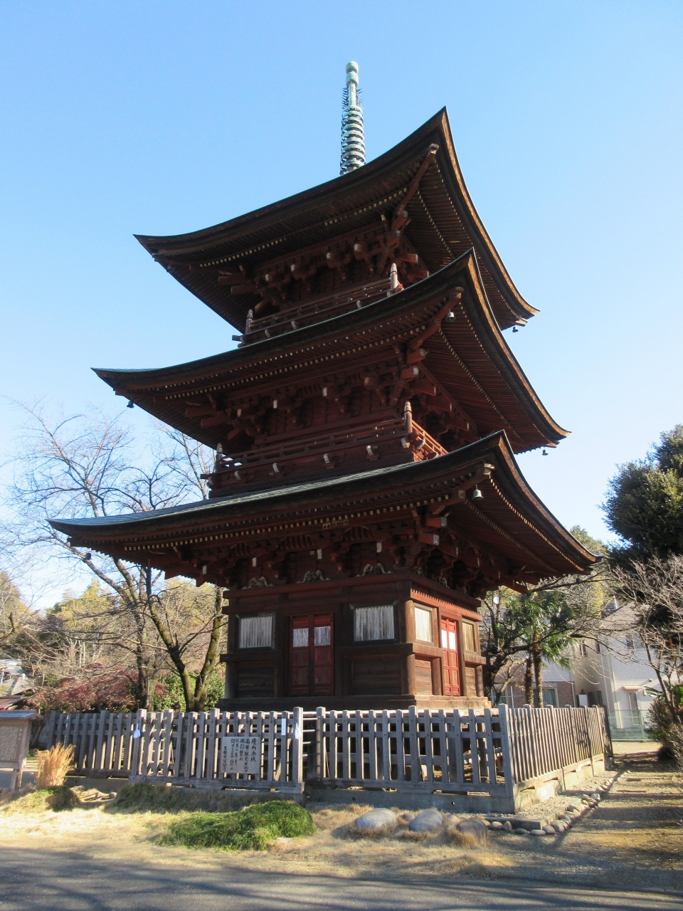 埼玉高速鉄道・戸塚安行駅から10分ほど、住宅地に建つ歴史ある寺院です。西暦810年から824年ごろに創建された寺で、境内には高さ23mの、埼玉県で最も高い木造の三重塔が建っています。家光の長女・千代姫が奉納したもので、鉄製のくぎを1本も使わず、一層の天井付近には十二支が刻まれた三重塔です。本堂には100体の観音様が奉納されていて、ガラス越しに参詣することができました。1月の寒い日だったこともあり、訪れる人もなく、静寂な中で参詣することができました。広い駐車場もあり、車で訪れた場合は、550年の歴史がある桜の名所でもある密蔵院や、400年以上前に建てられた趣ある山門を持つ金剛寺、関東郡代・伊奈家の菩提寺である源長寺、広大な敷地に弁財天や十三佛が祀られた興禅寺など、歴史ある寺を合わせて参詣するのも面白いと思います。