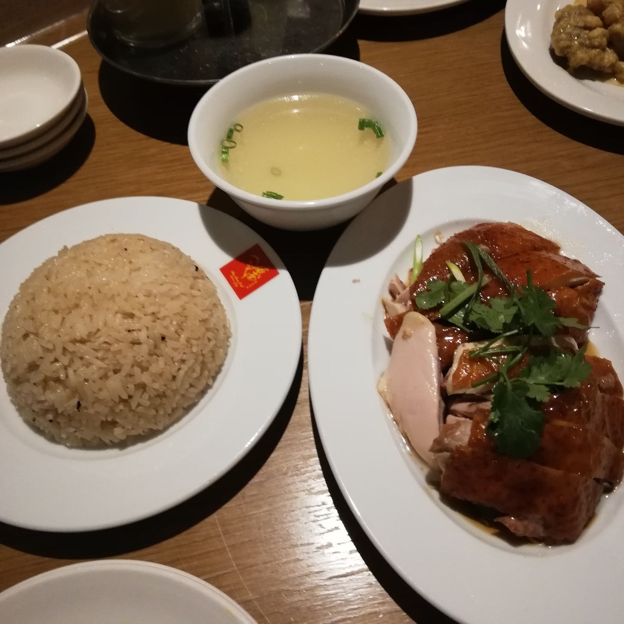 シンガポール料理店のこちら、チキンライスのチキンは蒸しと焼きから選べました。