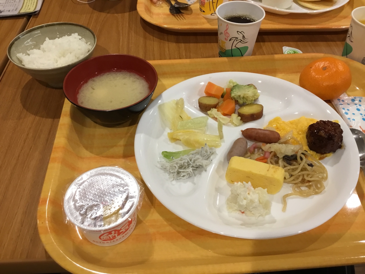 シングルの個室でしたが、タオルを干すところがあって助かりました。風邪予防にもなりますし。大阪発の朝食はショボいですが、愛媛発の朝食はバイキングです。