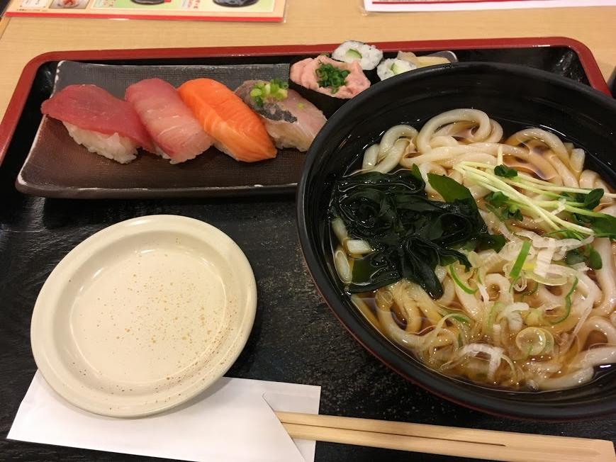 ランチで利用しました。水天宮駅直結のビルの2階、箱崎ターミナルにあります。ランチだと1000円以下で寿司とうどんのセットを食べられてお得です。館内には空港に向かう人が多いですが、特に混んではおらずゆっくり食べられました。