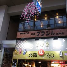 観光客相手の土産物店よりも地元客向けの衣類や靴、ドラッグストアがある商店街の北陸土産物屋の2階にあるので、狭い階段を上って入ります。