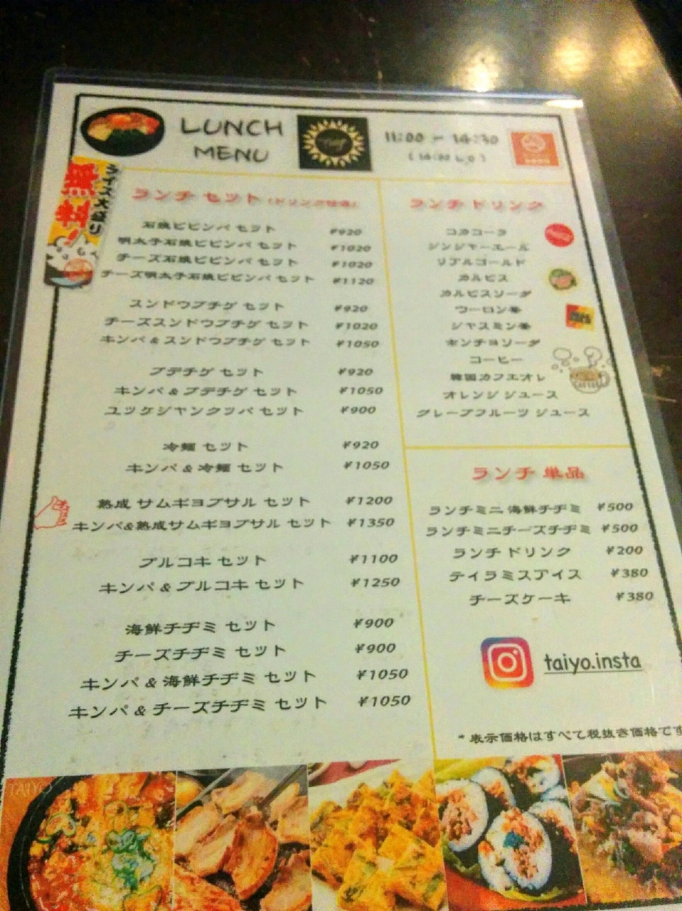 みなさんこんにちは、ふとももぷるぷるです。平成30年9月16日に埼玉県加須市にある韓国料理Taiyoでランチしました。