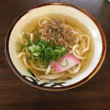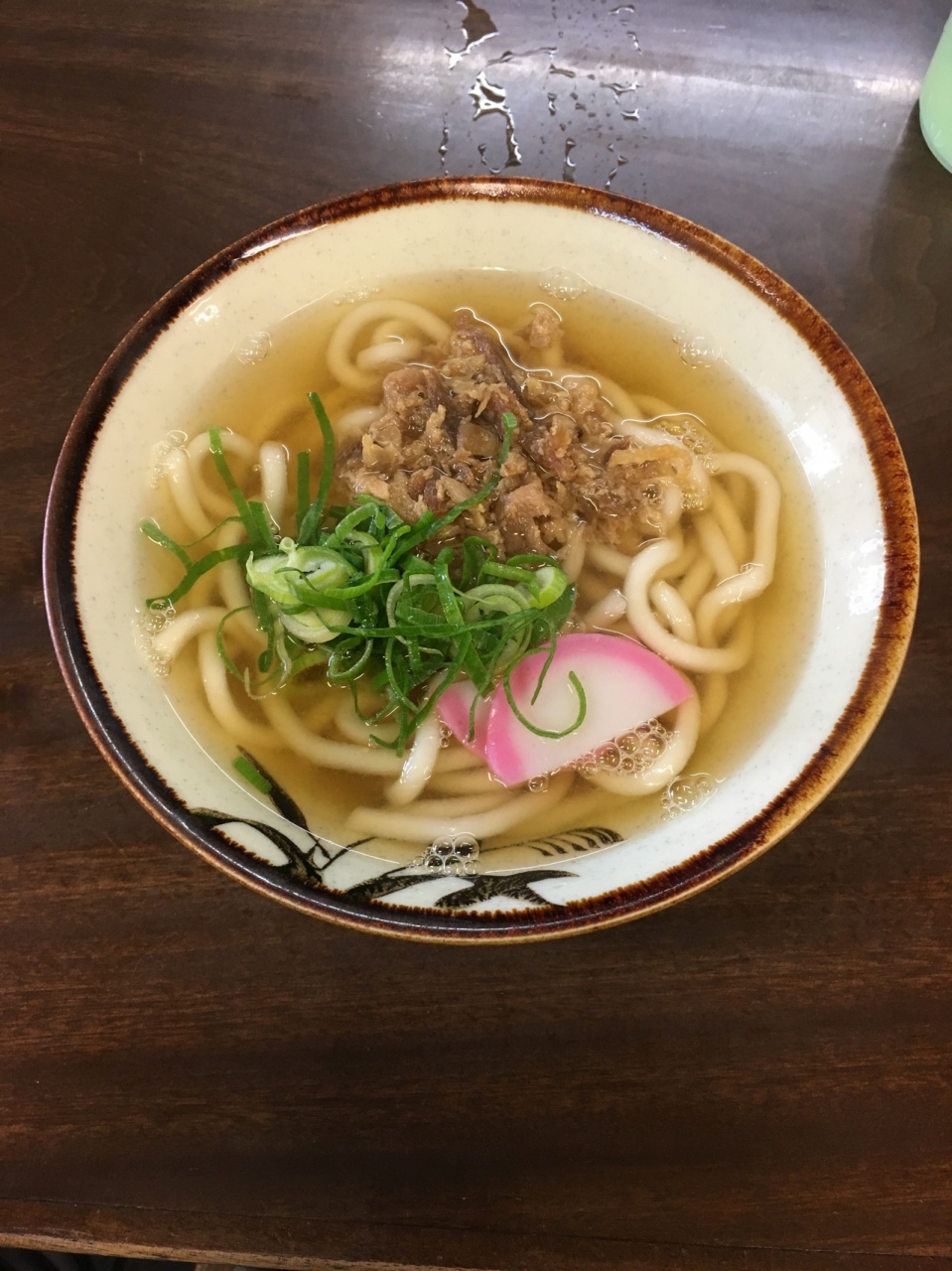 立ち食いなのかと思いきや、カウンターにはちゃんと椅子があるし、後ろには荷物置き場もある。出てきたうどんはかなり柔らかいもの。こちらの方はみなそうなんだろうか?でも普通に食べられる。
