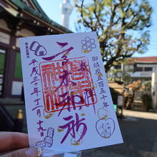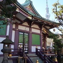神社境内からスカイツリーが見える光景が見たくて訪れました。