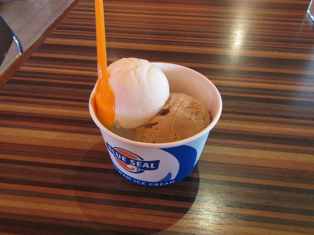 アイスクリームはもちろん、クレープも非常に充実していて、散々迷いましたが、期間限定のコーヒー&あずきフレーバー、それにココナッツのレギュラーダブルを食べました。