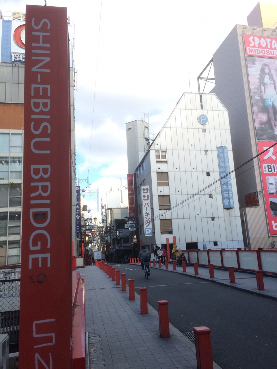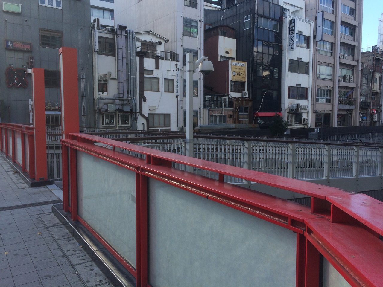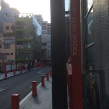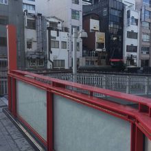 赤い橋で綺麗な橋でした。橋の下の川には、たまに観光客相手の遊覧船が通り良い雰囲気、橋の名前も英語でも記載がありました。車道は、車1台のみ通れる幅で左右の歩道には車道との境目として杭がいくつかありました。