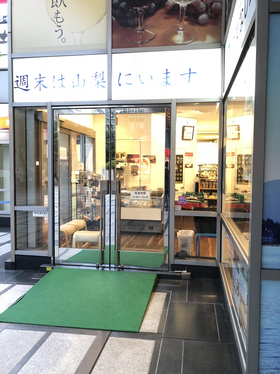 日本橋高島屋近くのさくら通り沿いにある、日本橋プラザビルの1階にあります。同じビル内には山口県のアンテナショップもありました。山梨産のワインやぶどうジュース、ジャムなどがあり、名物の信玄餅のソフトクリームもありました。