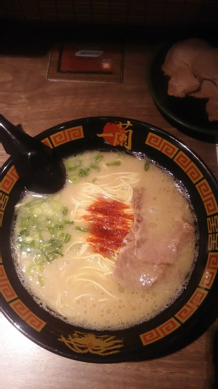 新宿駅東口にある一蘭の支店です。地下に入り口がありますが、普段は外国人観光客で行列が地上まで続いています。24時間営業。さすがに朝七時では客がいませんでした。店員も外国人が多いようでしたが、半個室になっている各席には暖簾があり顔は見えません。