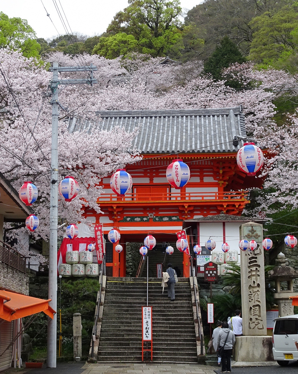 境内に標準木があり,和歌山の桜の名所と言えばここ。昨日満開との観測。朝は雨模様でしたが,紀三井寺駅に着いたときには上がってくれました。長い石段を登り,境内へ。雨露に濡れた桜もなかなか趣がありました。2002年に竣工した鉄筋コンクリート造3階建の新仏殿では,木造で日本最大の観音菩薩像に圧倒。3階に登ることができ(100円),境内を覆う満開の桜や和歌浦湾を望む景色を楽しみました。