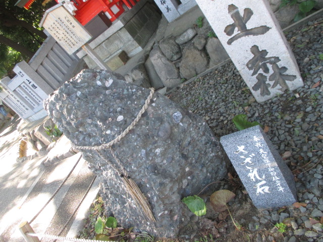 一見普通の石で何だろうと思いました。石の横の石碑に「さざれ石」とあり、その横に「奉祝 天皇陛下 即位20年」とありましたので、当然君が代の歌詞から、この名前が付いたものと思われます。こんなに由緒ある石があるなんて、生田神社はやはり格式が高いんだと再認識しました。