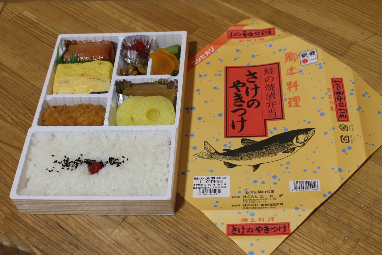 新潟駅で名物弁当、「鮭のやきつけ弁当」を購入しました。