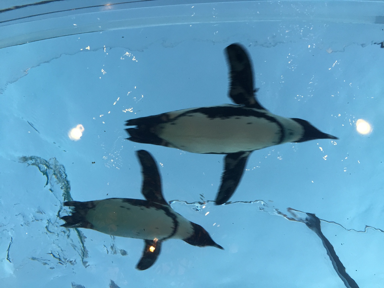 外のエリアには見上げると上にペンギンの水槽がありまるで空飛ぶペンギンのようでした!