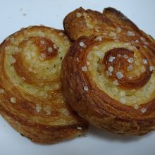 パンの種類はこの規模の店としては十分。どれも見た目も綺麗で美味しそうです。クロワッサン生地にザラメがかかったパンを小入してみました。ザラメの甘さとパンの甘さが丁度良く美味しかったです。