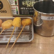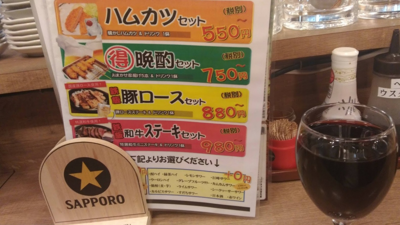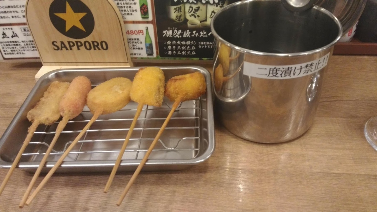 でも串カツなど大阪らしいつまみがあり、普通の地元店という感じ。750円の晩酌セット串カツ5本とアルコールを注文、普通においしくいただけました。
