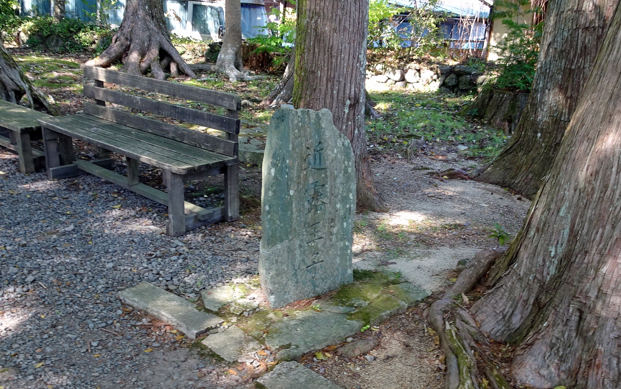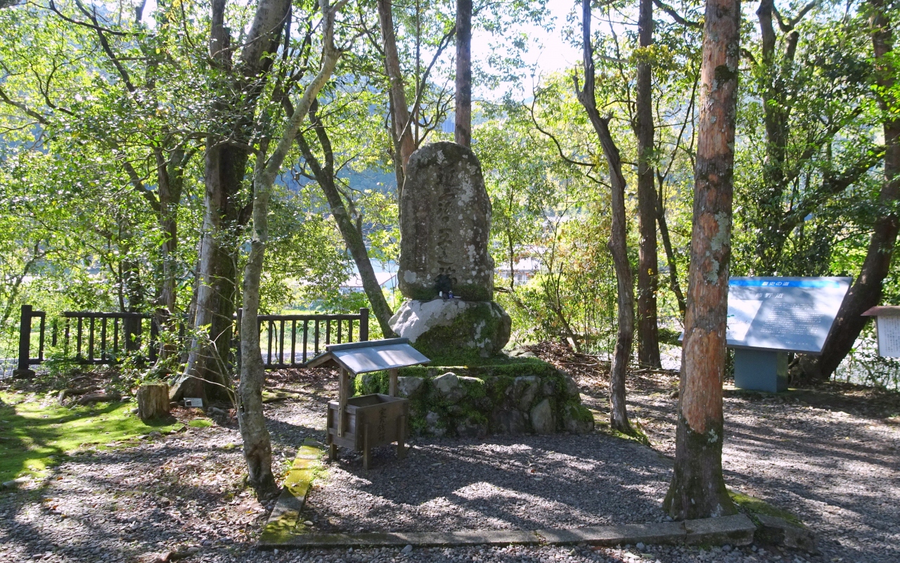 「近露」の地名は,花山法皇が箸折峠で食事した際,折って箸としたカヤの軸を伝う露を御覧になり,「これは血か露か」と尋ねられたことに由来。熊野九十九王子の中でも最も古いものの一つですが,今は,大本教主出口王仁三郎の筆によるとされる「近露王子之跡」という石碑が残るのみ