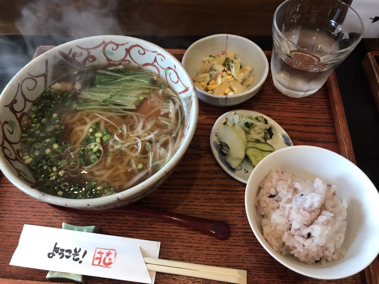 温かい支那そばランチと冷たい麺を温かい出し汁に付けて食すつけ麺ランチは、美味しかった~麺が平打ち麺でこしもあり言うことなし。ランチには小鉢とご飯がついてます。小鉢とご飯が、なければ少し物足りないと思います。