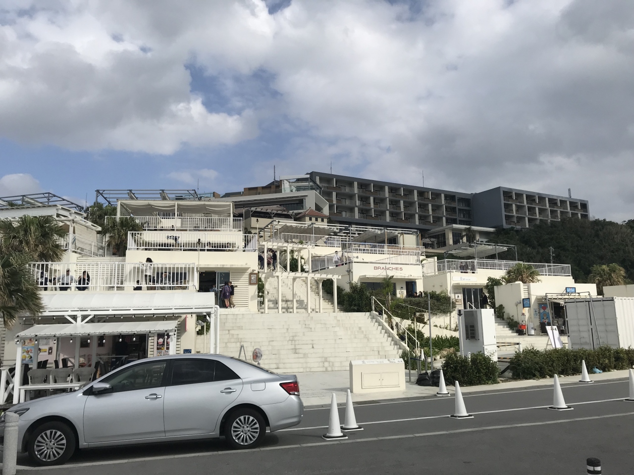 無人島から、ホテル、そしてウミカジテラスと、どんどん人気スポット化する瀬長島。ミコノス島のような真っ白な傾斜地に立つ建物、リゾートの夢を実現させてくれる場所です。ただし人気過ぎて人多すぎ。目の前のビーチもきれい。駐車は無料(道路ですが)おしゃれなお店、レストランが並びます。