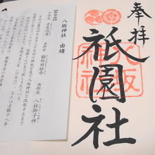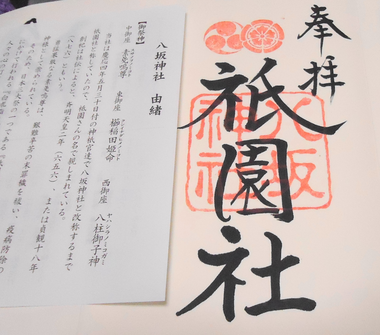 御朱印は、明治以前の名称「祇園社」の上に押印してあります。