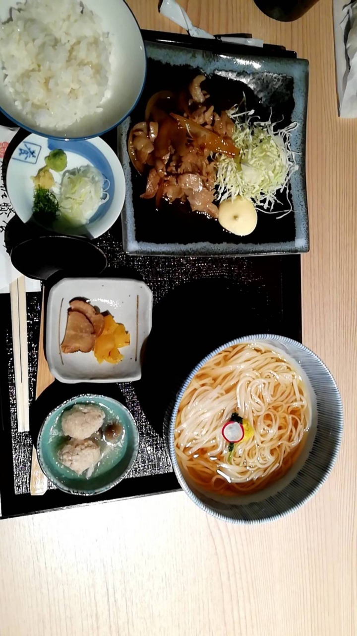 秋田の稲庭うどんのほか 秋田の美味しいものを頂けるお店です。秋田桃豚生姜焼き➕ミニ温かけうどん定食 1200円をいただきました。プラス50円でせいろにする事も出来ます。ちゃんといぶりがっこも付いて来ますよ。