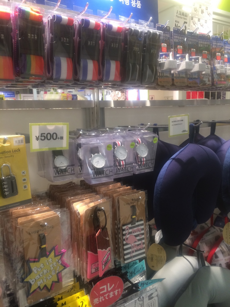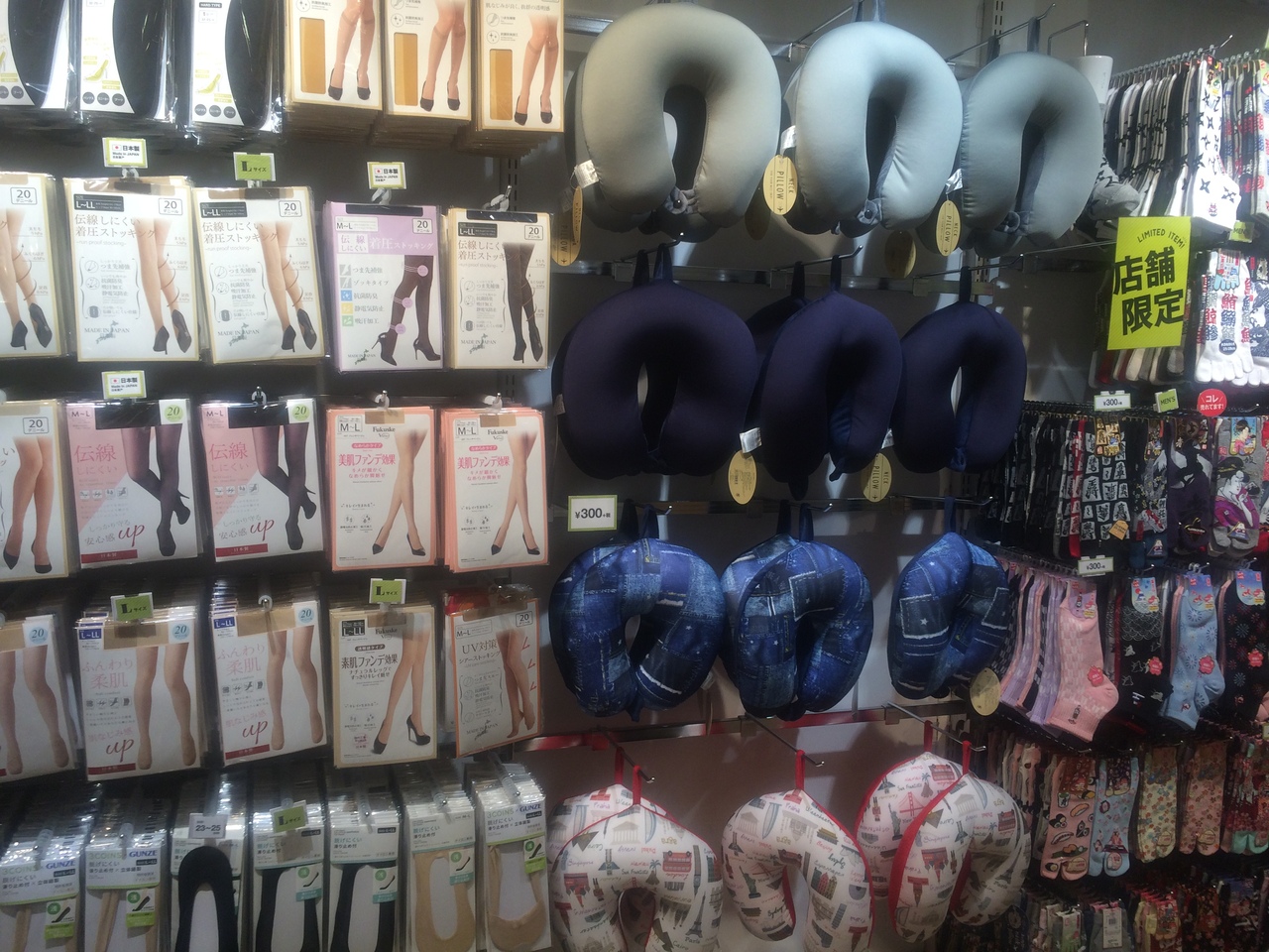 300円の品の店舗ですが、500円品も結構ありました。300円、500円と分かりやすく記載があるのが良いです。トラベルグッズがたくさんあり、空気枕を購入しました。スーツケースがかさばらないようにするベルトの種類が多くありました。