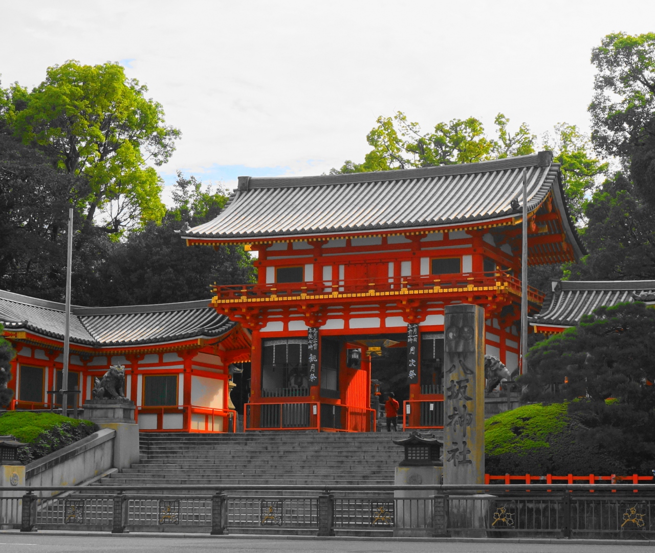 朱塗りの美しい姿は、八坂神社の代表的な景観ですね。