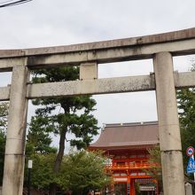 八坂神社の正門はこの鳥居です、正面に南楼門・本殿へと続きます。
