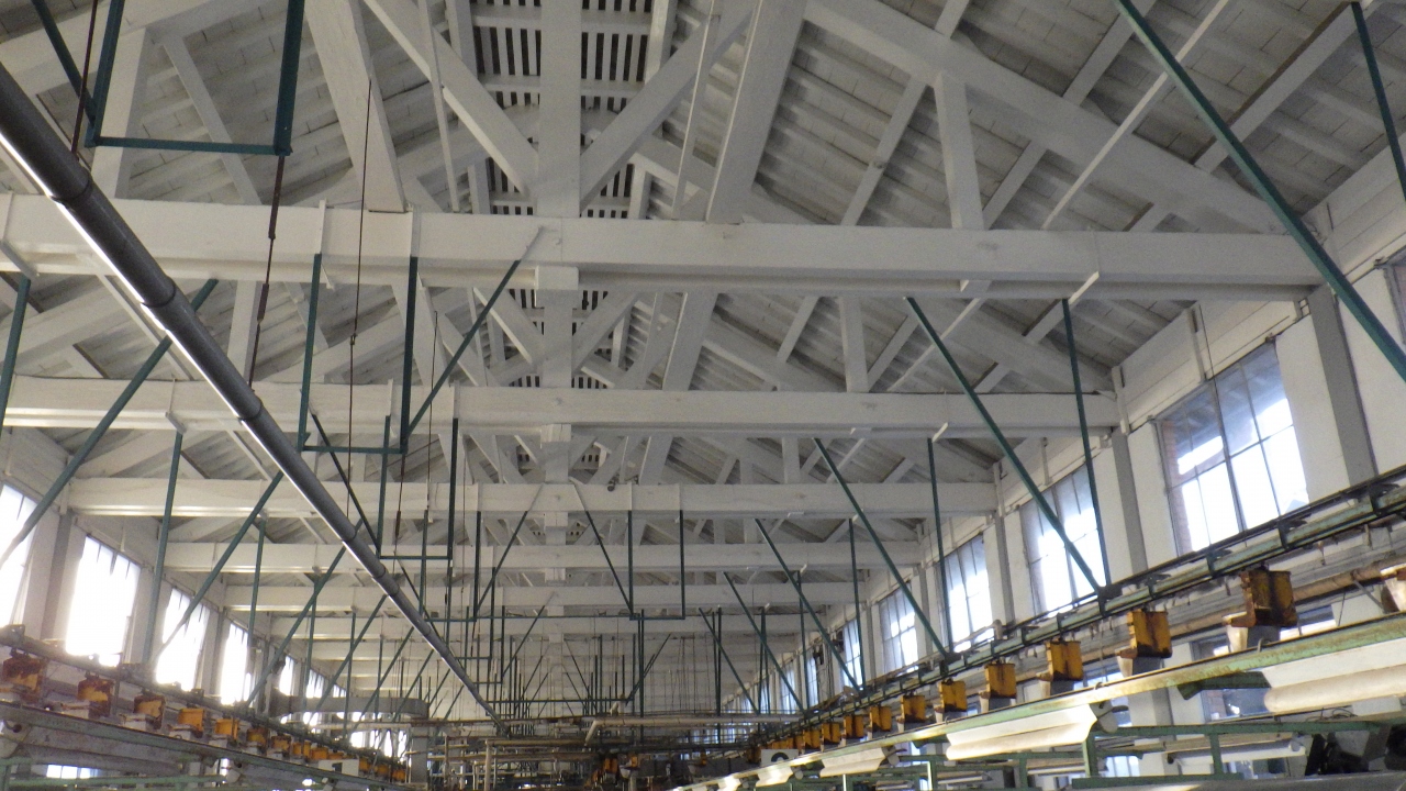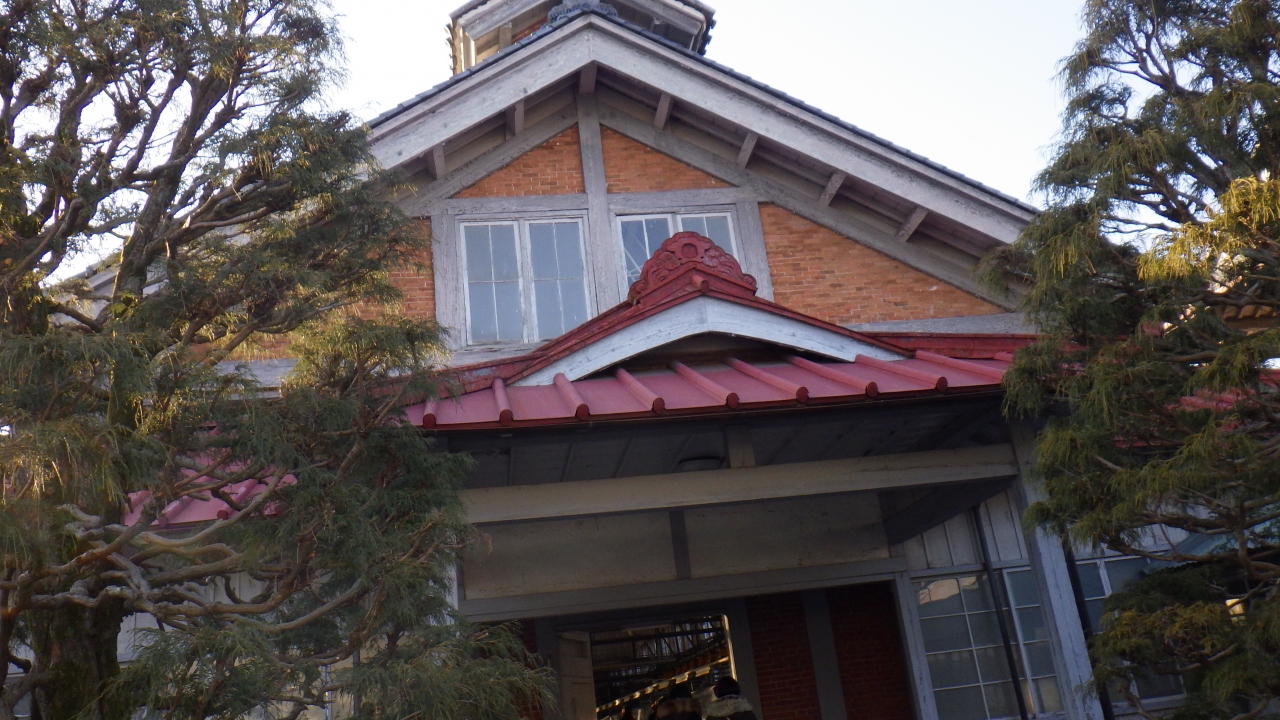敷地の中央長さ140.4mと横に大変長い建物で、日本建築には無いトラス構造小屋組みで建てられています。