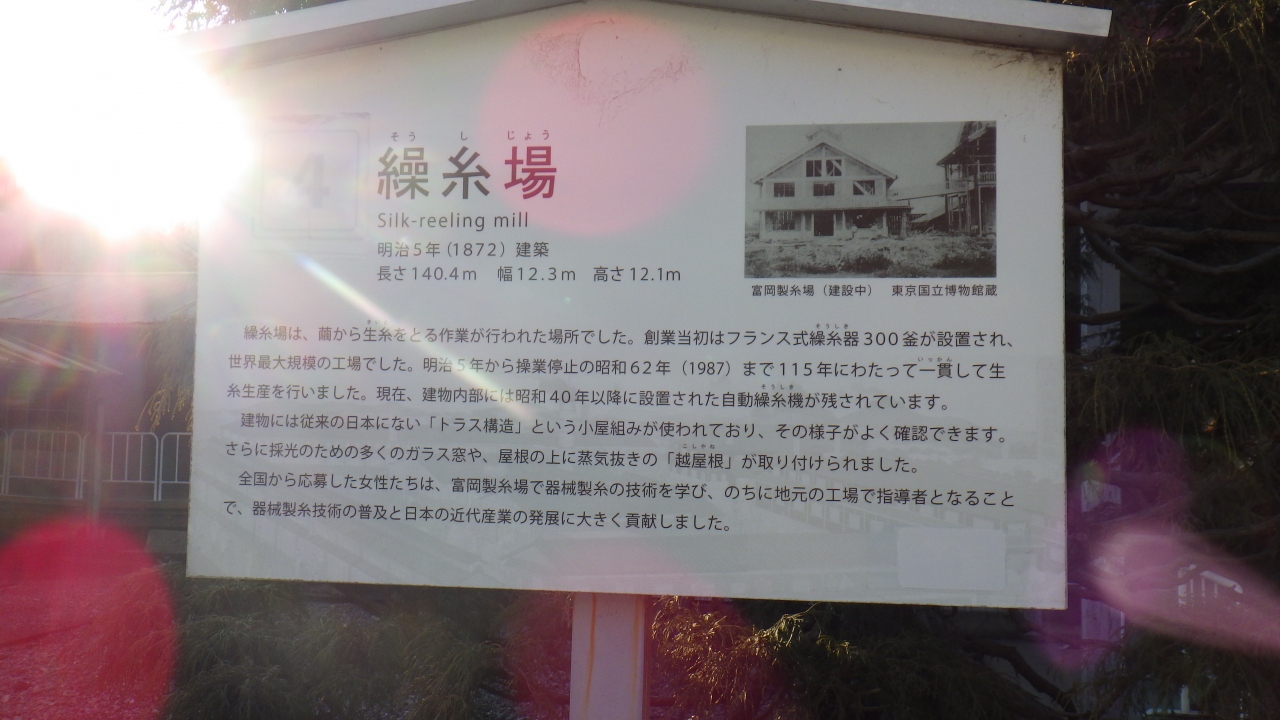 上信越自動車道富岡インターチェンジから15分弱、世界遺産に登録された明治政府が設立した官営の器械製糸場の富岡製糸場内にあります。
