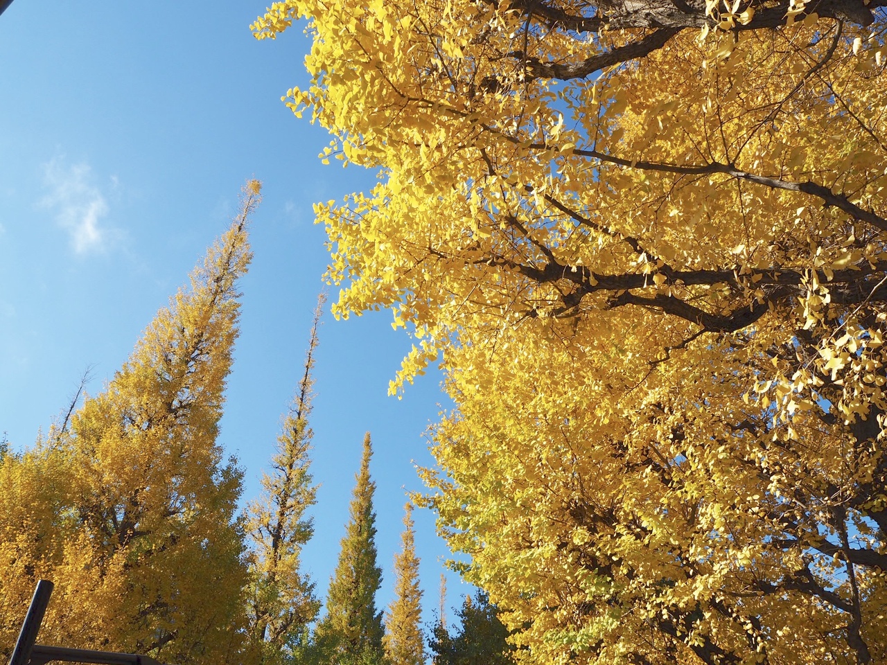11月下旬の週末に紅葉を見に神宮外苑へ行きました。非常に混むと聞いていたので、朝早く8:30頃到着しましたが、すでに人は結構いて、道路の通行規制が始まる9:00には混雑していました。朝早かったので片側のイチョウは、まだ影になっていました。