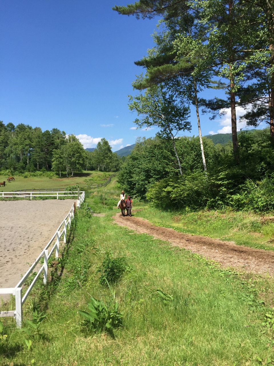 初めて乗馬体験をしました。ヘルメットを貸してくれて、決められたコースを馬に乗って1週しました。係りの人が付きっきりで案内してくるので、馬があばれることなく安全でした。馬の上はかなり揺れてずり落ちそうになりました。踏ん張りが必要です。開田高原の中で一番楽しいアトラクションでした。