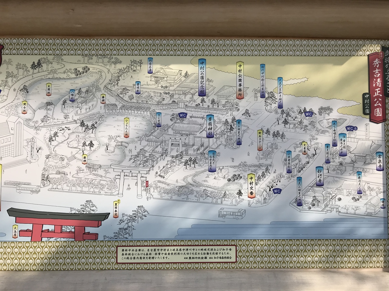 名古屋地下鉄中村公園駅を出ると大きな鳥居があり、豊臣秀吉生誕の地とされる中村公園内に豊国神社はある。駅から徒歩5分程。