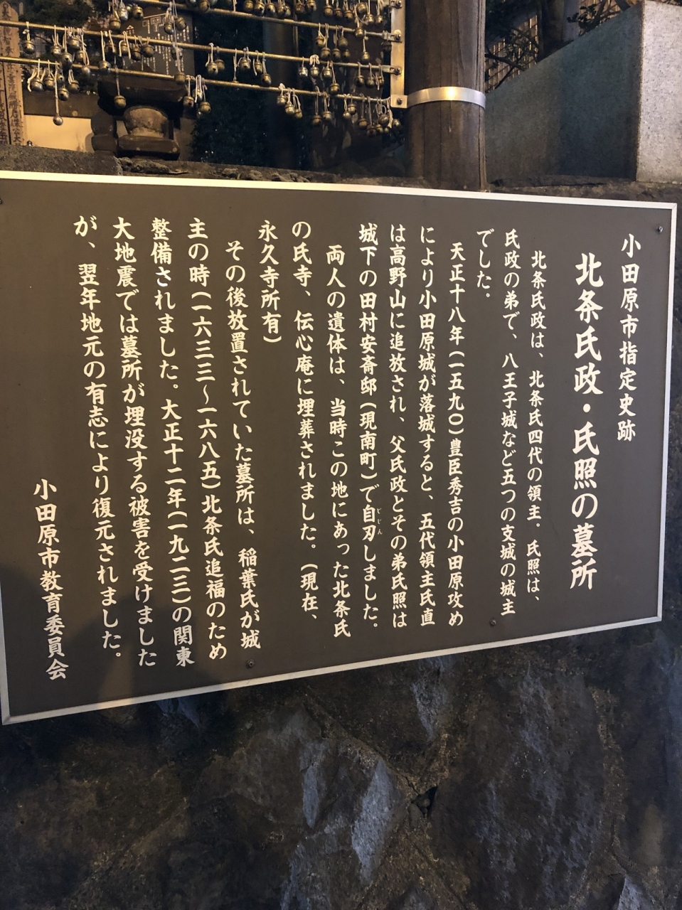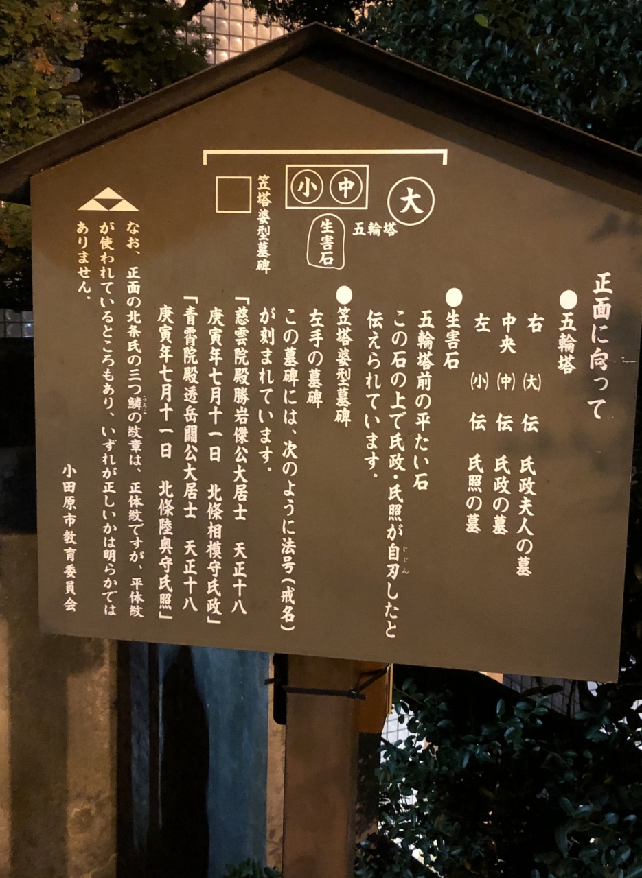 なお、この墓所は永く放置されていたものを、稲葉氏が小田原在城の頃、北条氏供養のため、作り直した
