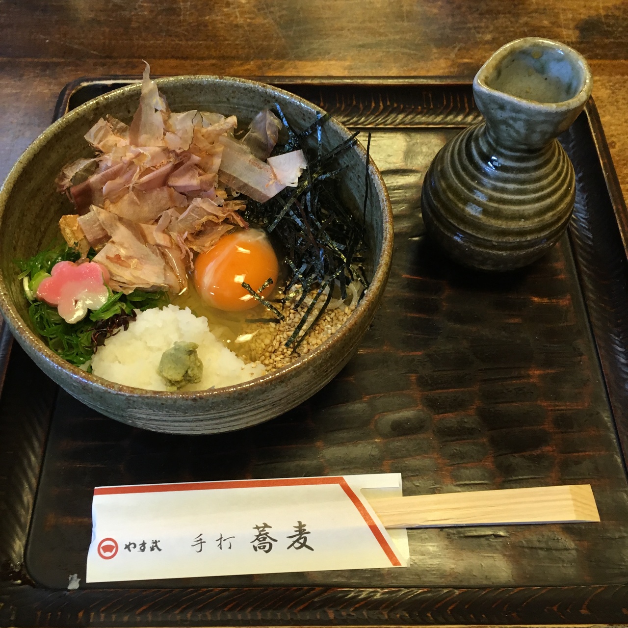 事前に調べてから訪問しました。寒い日でしたが、おろしそばを冷でいただきました。具もたくさんでおいしく頂く事ができました。梅が枝餅をはじめ、甘味なども揃っているお店でした。休日でしたのでこんでおりました。