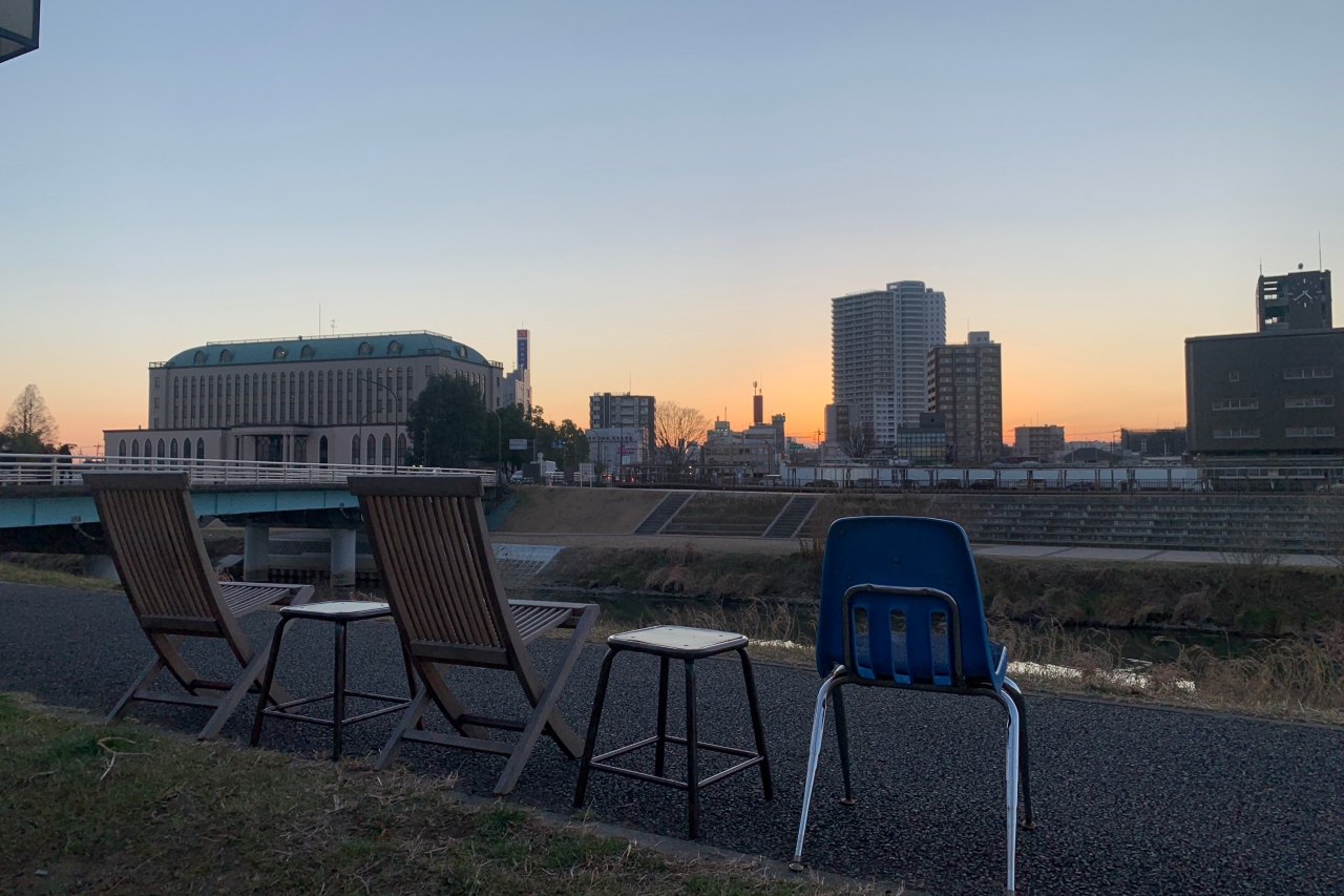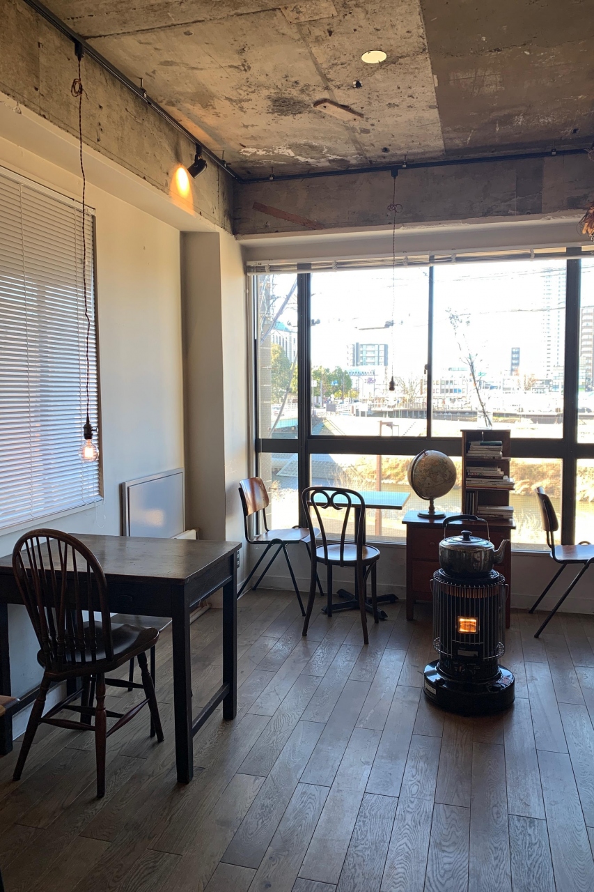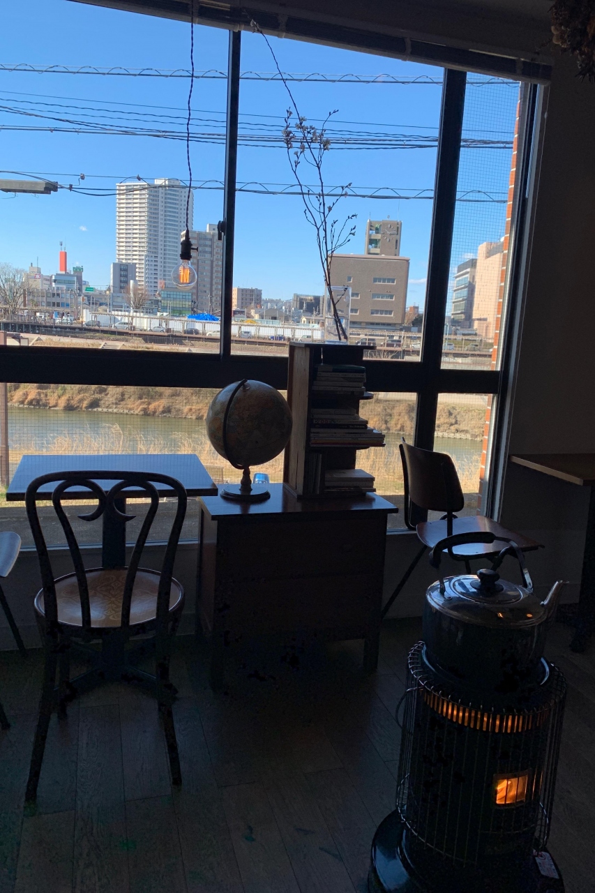 元荒川沿いにお洒落カフェのKnock coffee があり、2階から川を見渡せます。