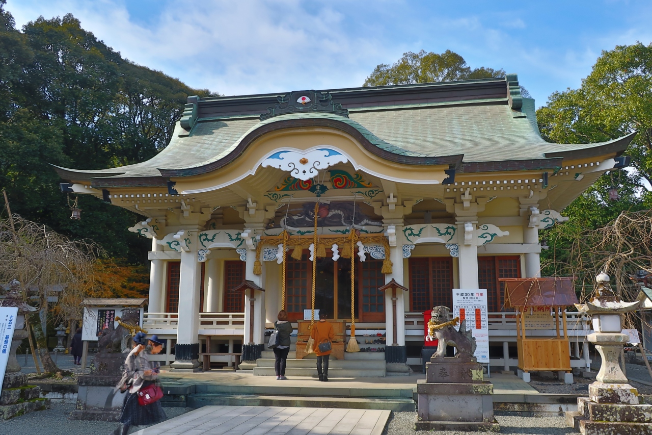 武雄氏図書館の東側にある古い神社が武雄神社です。735年の建立された古社で祭神は武内宿禰が主神とし、縁結びにご利益のある神社です。本殿のある境内は石垣の上にあり、昔の山城のようなところに建てられています。本殿は白く塗られた姿がとても印象的です。