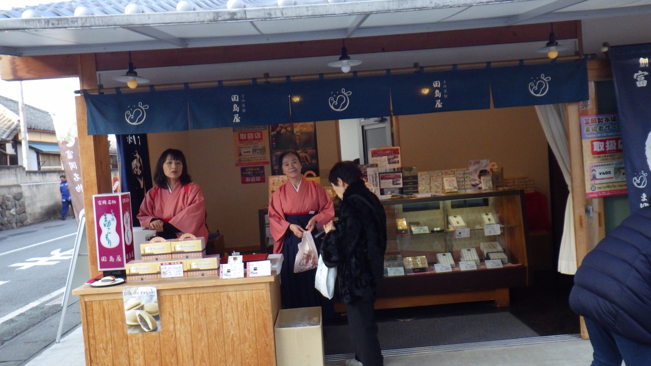 信越自動車道富岡ICから約15分弱、見学用の駐車場から商店街を通って富岡製糸場の入り口のすぐ前の豆菓子専門店です。