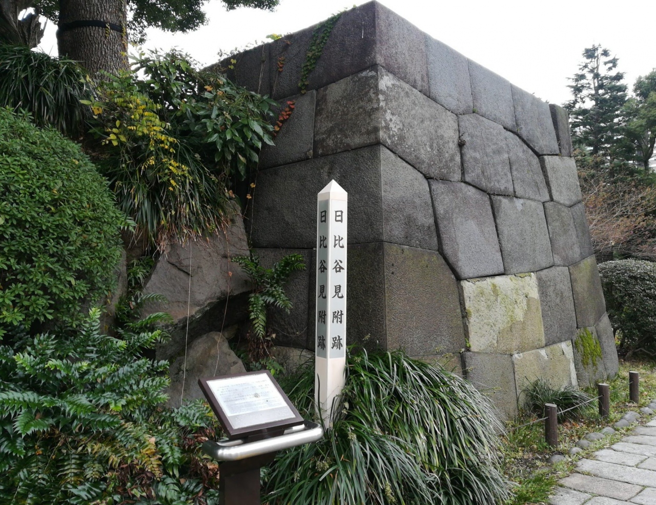 日比谷公園の北東の端あたりに石垣が残っていました。見附なので、江戸城の警備のための城門のようで、昔は36もの見附が江戸城周囲にあったそうですが、ここは石垣のみ残っていました。かなり大きな石組みでしたので、当時は相当大規模な建物が乗っていたんだろうと思いました。