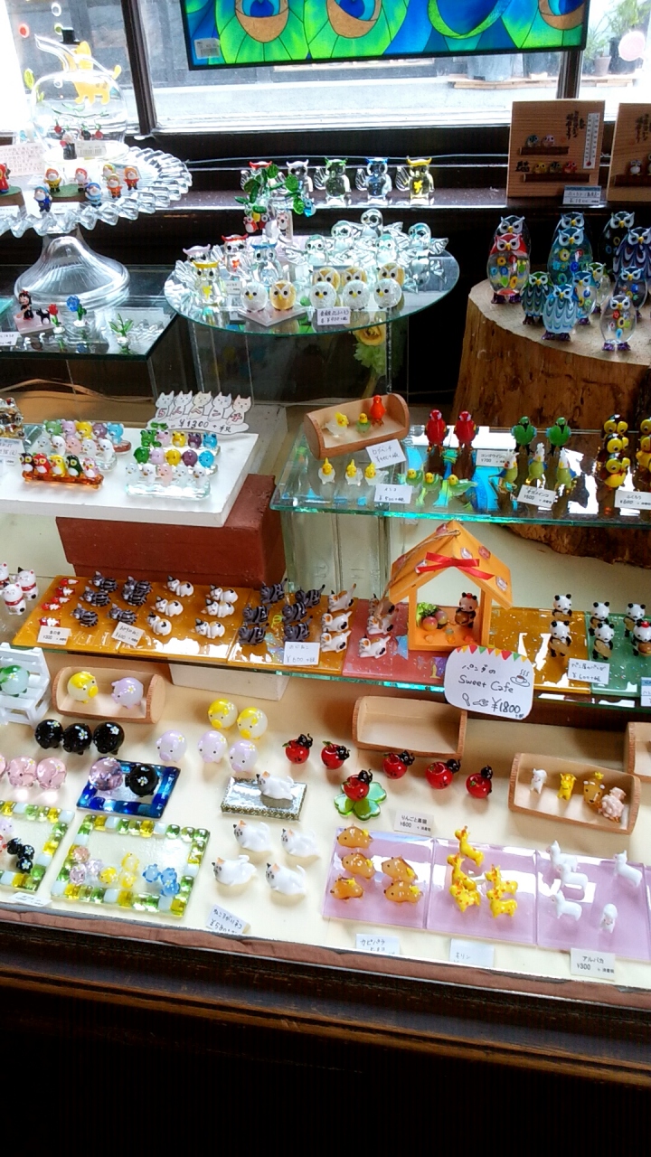 中は美しいガラス品が常用品から観賞用まで大小たくさん並んでいます。