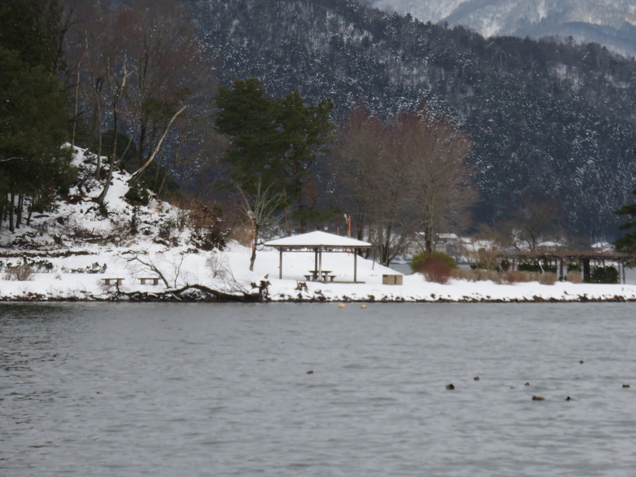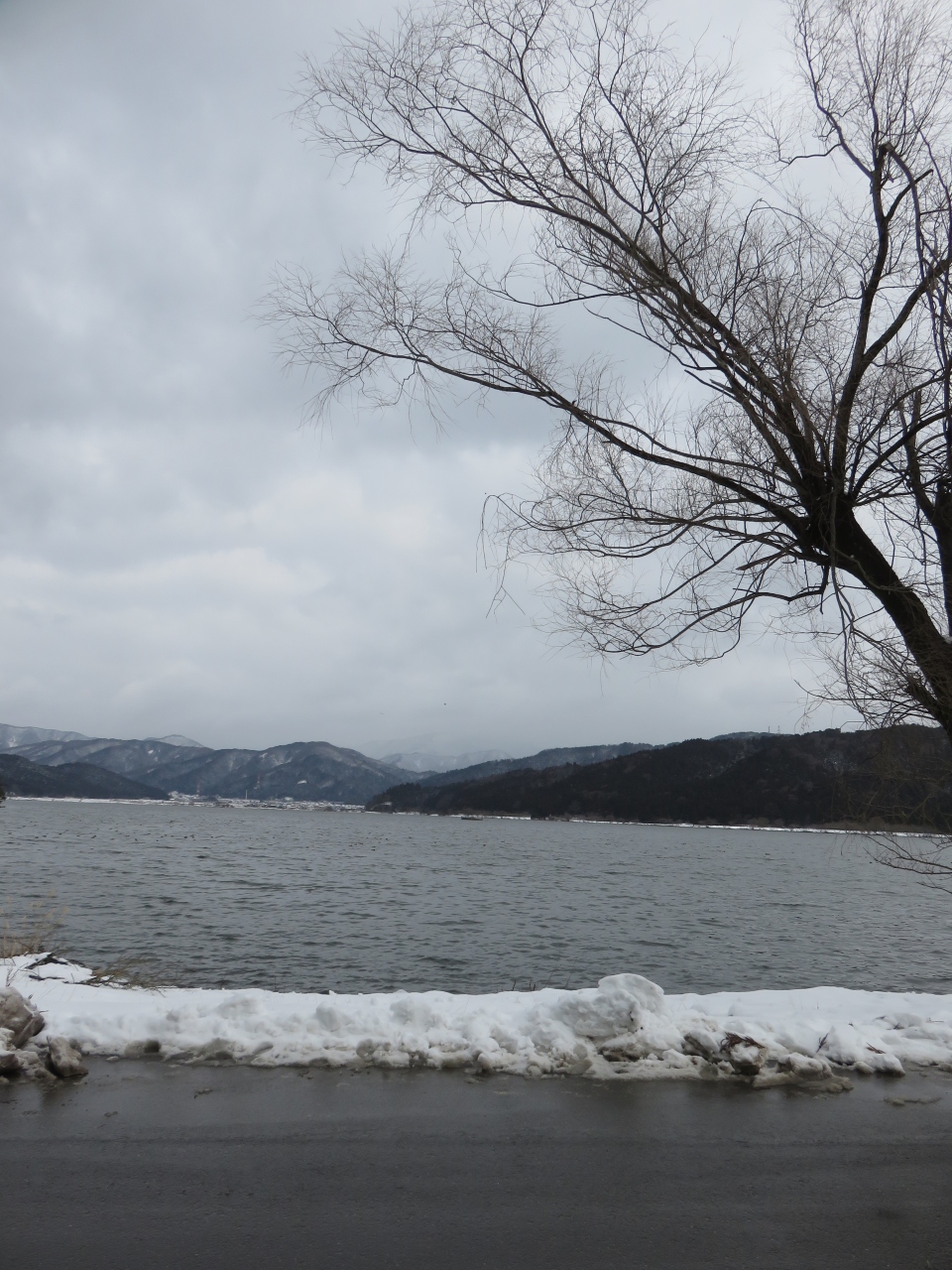 湖の色は日差しによって、深い藍色や緑にも見え、何となく寒々とした空気の中に映える雪景色感じました