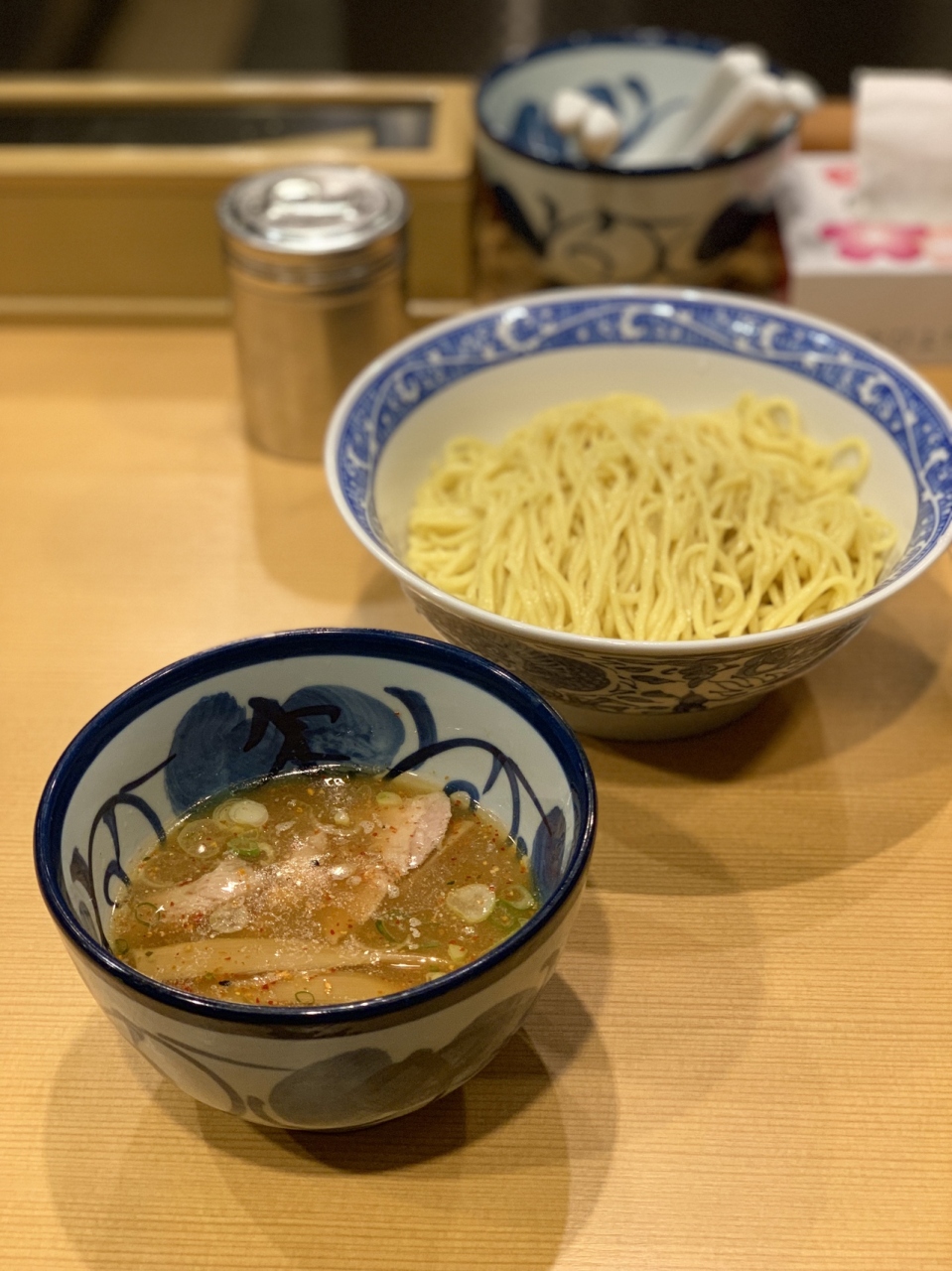府中本町駅から数分のところにあり、綺麗なお店です。メニューは、中華そばとつけ麺だったので、それぞれを注文してシェアしました。どちらも魚介系のスープで美味しいです。私はつけ麺の方が好みで、他のお客さんもつけ麺を食べてる方が多かったです。