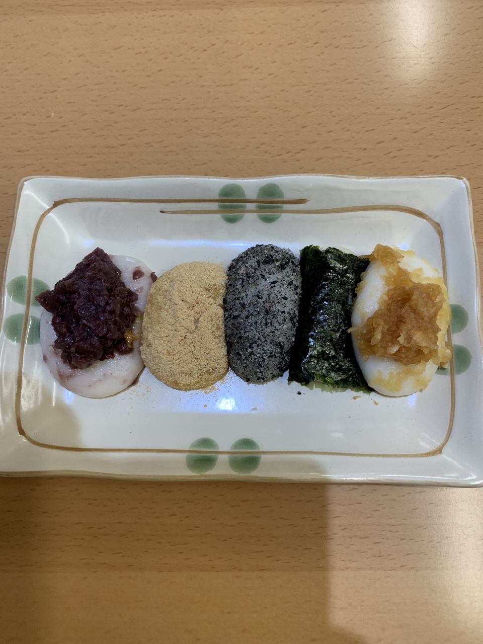 今回も、柔らかくて、美味しいお餅を頂きました。味が五種類あって楽しめます。