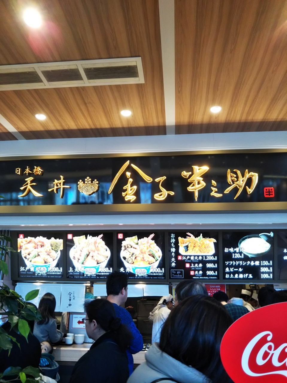 木更津アウトレットのフードコートに入っている天丼屋です。フードコートは10:30オープン。11:00頃、そちらに行きましたが、もう行列が出来ていました。オーダー後も、提供までに15分くらいかかります。非常に人気のある天丼専門店です。メニューは、天丼、上天丼、江戸前天丼があります。私は天丼をいただきましたが、海老2本、舞茸、イカと小柱のかき揚げ、スナップエンドウ、玉子がのっており、ボリュームたっぷりです。とても美味しくいただけました。