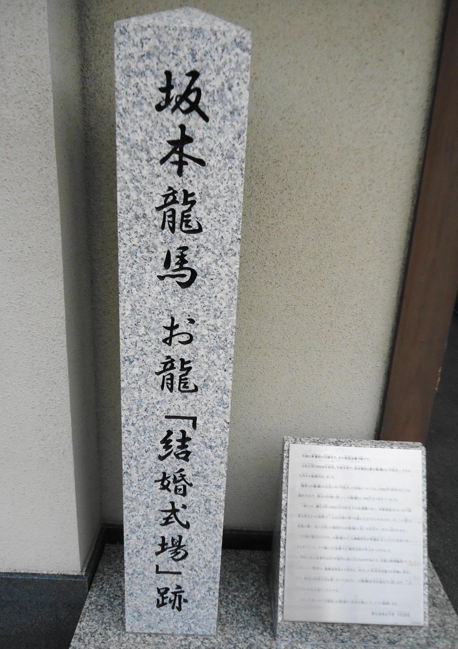 三条通り白川あたりを歩いていると、坂本龍馬お龍「結婚式場」跡がありました。