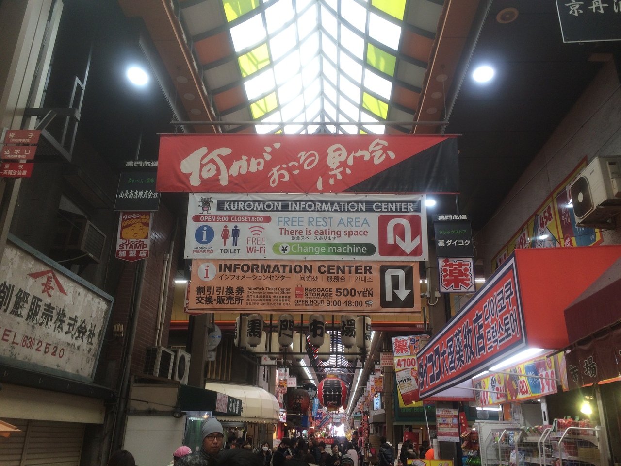 市場と言うより屋台の出店が多く食べ歩きのテーマパークのようでした。魚介類が多かったですが、肉類やたこ焼き屋もあり、スーパーでは新鮮な刺身も売っていました。アーケードになっていて便利ですが人でごった返していたので歩くのに苦労しました。