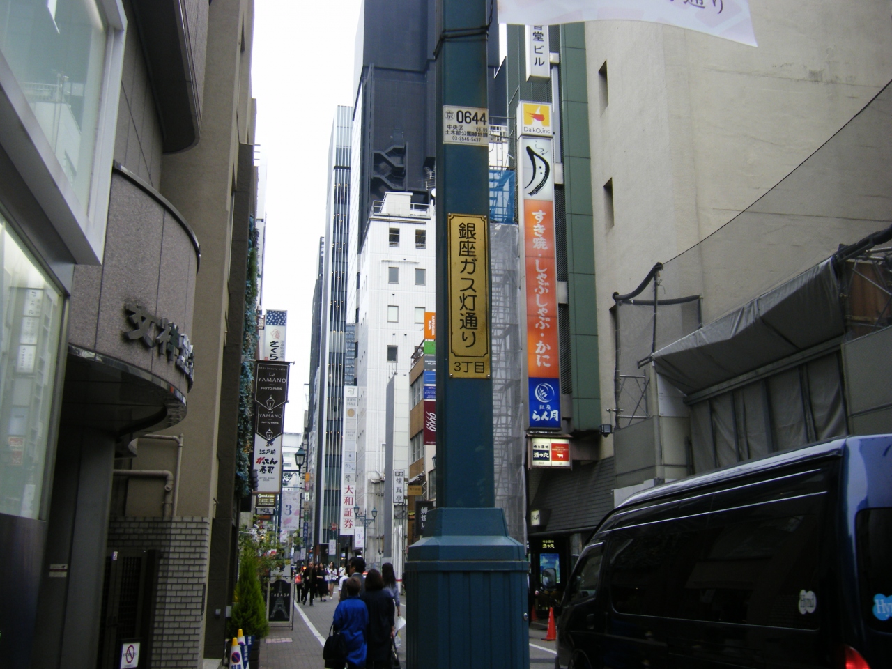 銀座の中央通りから1本有楽町寄り側を並行に作られている通りのうち、晴海通り付近から京橋付近までの通りがガス灯通りと名付けられています。通り沿いには当時の姿と思われるガス灯(実際に夜になると明るくなるのかどうかはわかりませんでしたが)が並んでおり、雰囲気があって面白かったです。歩いてみて昼間だと静かな感じがしましたが、飲食店が多いので夜になるとまたガラッと雰囲気が変わりそうな気がしました。
