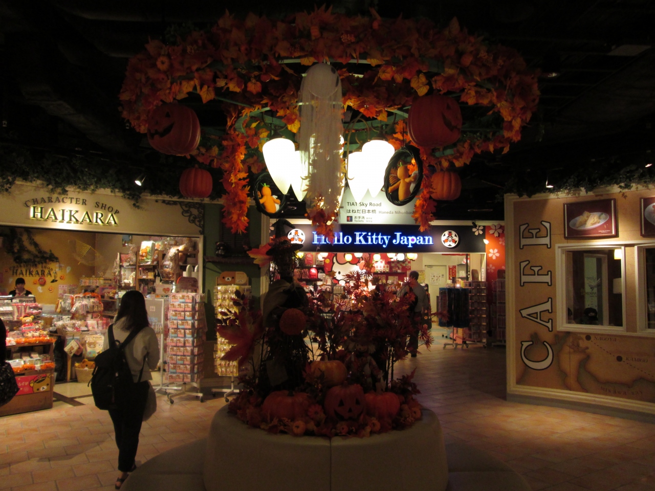 10月のハローキティジャパンのエリアはハロウィンの飾りがあり素敵でした。なかなかこういう飾りは日本の空港で見かけたことはありませんが、羽田空港国際線ターミナルの飾りは遊び心があり、また、上に釣ったりするような凝った作りをするので訪問するのがいつも楽しみです。