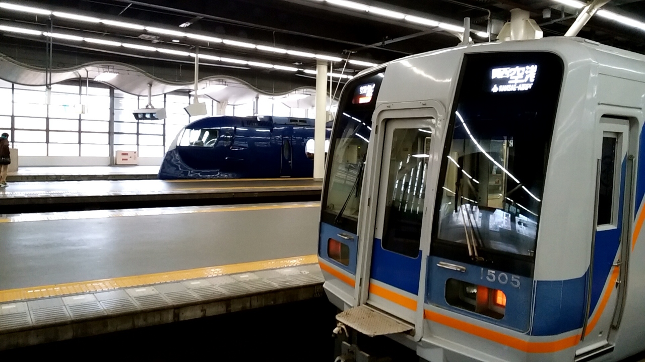 南海電車で難波から関空へと向かいました。空港急行にのりました。始発の難波駅で座席は6割方埋まっておりました。途中の駅からも乗客がありすぐに座席は埋まっていました。空港に向かう方が多くスーツケースを持った乗客で一杯でした。
