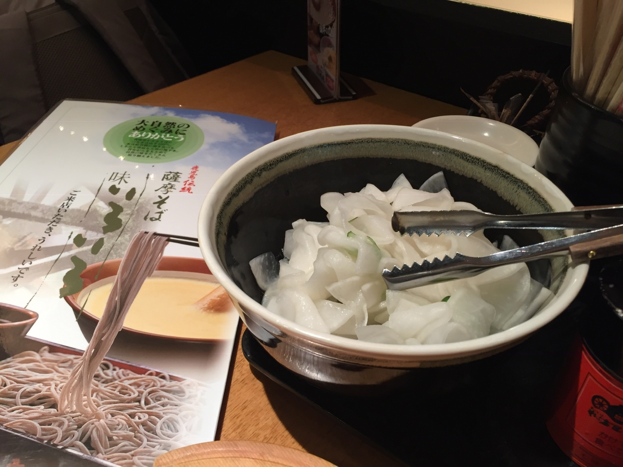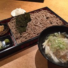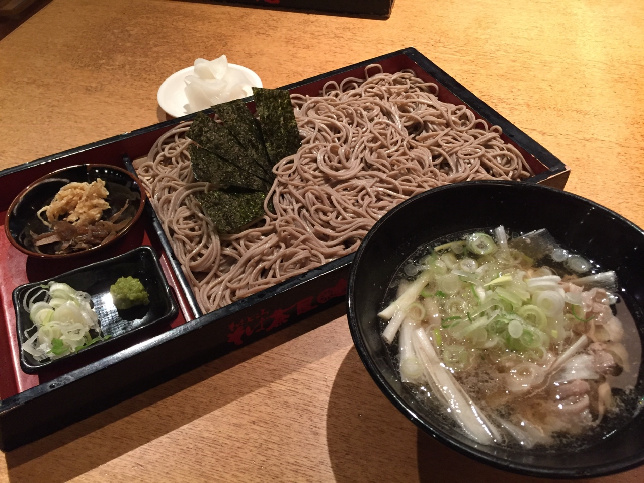 アミュプラザB1Fにあるお蕎麦屋さん。「黒豚つけそば」をいただきました。いわゆる鴨せいろの黒豚バージョンです。ざる蕎麦を、黒豚の温かいつけ汁で食します。