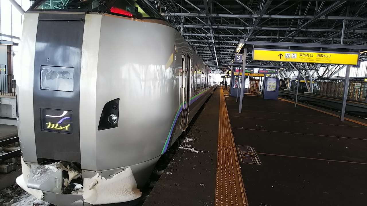 電車が好きで地方の特急によくのりに行きます。今回は旭川から札幌に特急カムイに乗る機会がありました。1時間に1本位の特急が出ていて便利です。近代的でとてもキレイな旭川駅で、平日だったので自由席でもよかったのですが、良い位置の窓際が良かったので指定を取りました。初めは空いていましたが、札幌に着く頃はほぼ埋まっていました。旭川に入ってきた車両は雪をまとったシルバーでとても格好良かったです。車内は茶系でシックで、新しいのかきれいでした。途中は雪の大平原や人の気配がないような駅も通りすぎ北海道だなあと感じながらの電車旅でした、